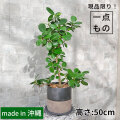 【沖縄産】全体の高さ:約50cm/幅:約35cm。インテリアショップやお洒落なカフェでよく見かけませんか? 当店の人気コーナー!現品限りの一点ものコーナー。写真の商品をお届けしますので、一目惚れのお客様はお早目にどうぞ(^.^) こちらは、近年、大人気のパンダガジュマル。このパンダガジュマル、人気者なのに成長が遅いため、とても流通量が少ないんです。「手塩にかけて育てる」って言葉がぴったりです。そして、その希少性もさることながら、このユニークな樹形と可愛らしい丸っこい葉っぱ。これもまた、人気の理由です!ガジュマルは、『多幸の樹』とも呼ばれる縁起のよい人気の観葉植物です!「幸せをもたらす精が住む木」として言い伝えられています。守り神として、開店祝い、新築祝いにもいかがでしょう (*^.^*)