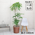 全体の高さ:約180cm/幅:約80cm。 お馴染みの観葉植物「パキラ」。お洒落なカフェやショップに飾られているので、皆さん一度は目にしたことがあると思います。ふんわり優しい雰囲気がお薦めポイント。また、別名「発財樹(money tree)」とも呼ばれ、縁起の良い観葉植物としてギフトにも人気の観葉植物です。当店の人気コーナー!現品限りの一点ものコーナーです。写真の商品をお届けしますので、一目惚れのお客様はお早目にどうぞ(^.^)